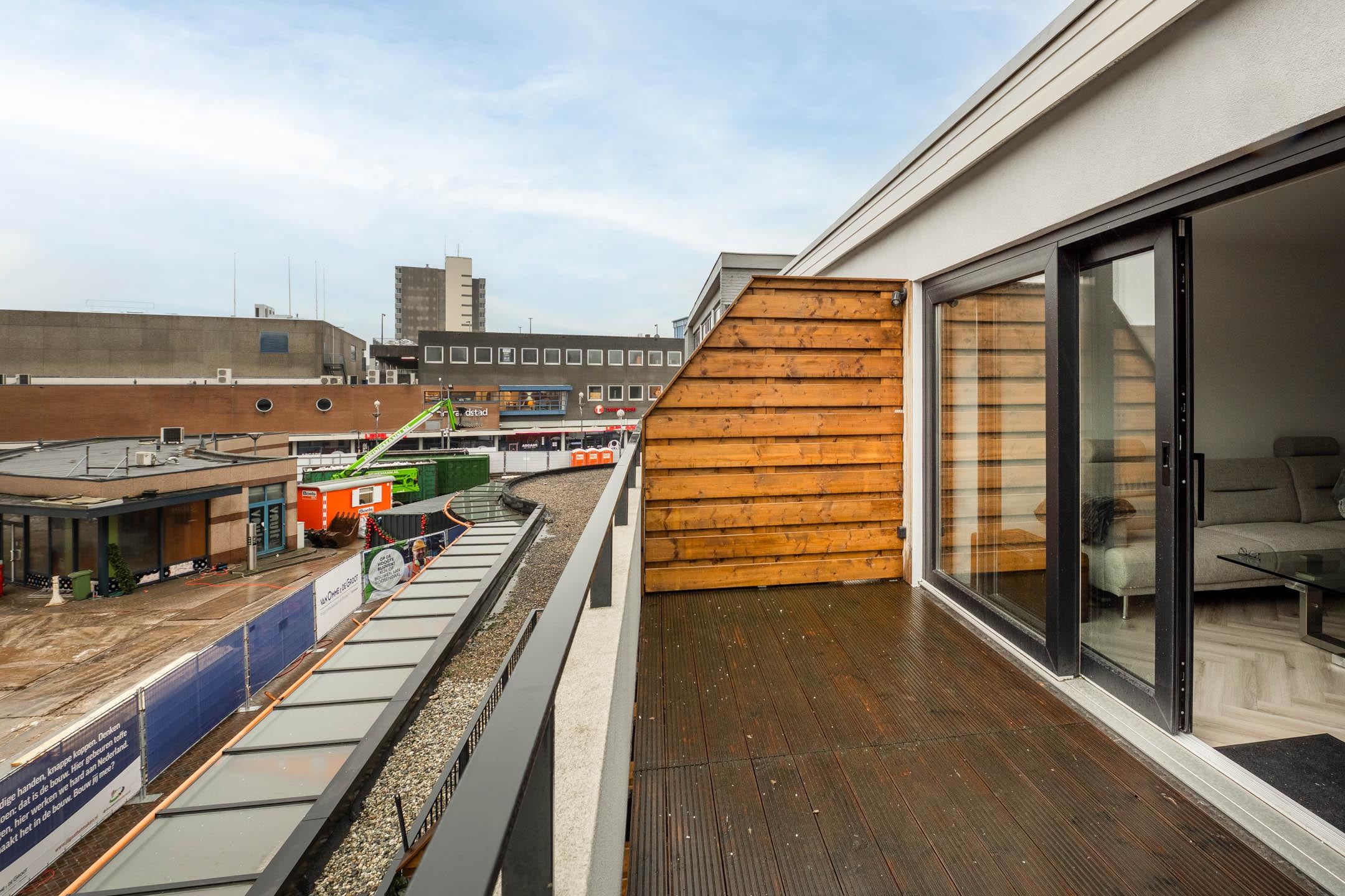 Met een oppervlakte van 55 m² beschikt het appartement over twee aparte slaapkamers. De tweede slaapkamer is momenteel ingericht als kledingkamer, maar kan uiteraard ook als extra slaapkamer, kantoor of hobbyruimte worden gebruikt. De lichte woonkamer heeft grote raampartijen die zorgen voor veel natuurlijk licht. Aan de voorzijde van het appartement bevindt zich een dakterras, waar je kunt genieten van de buitenlucht en het uitzicht over de stad.