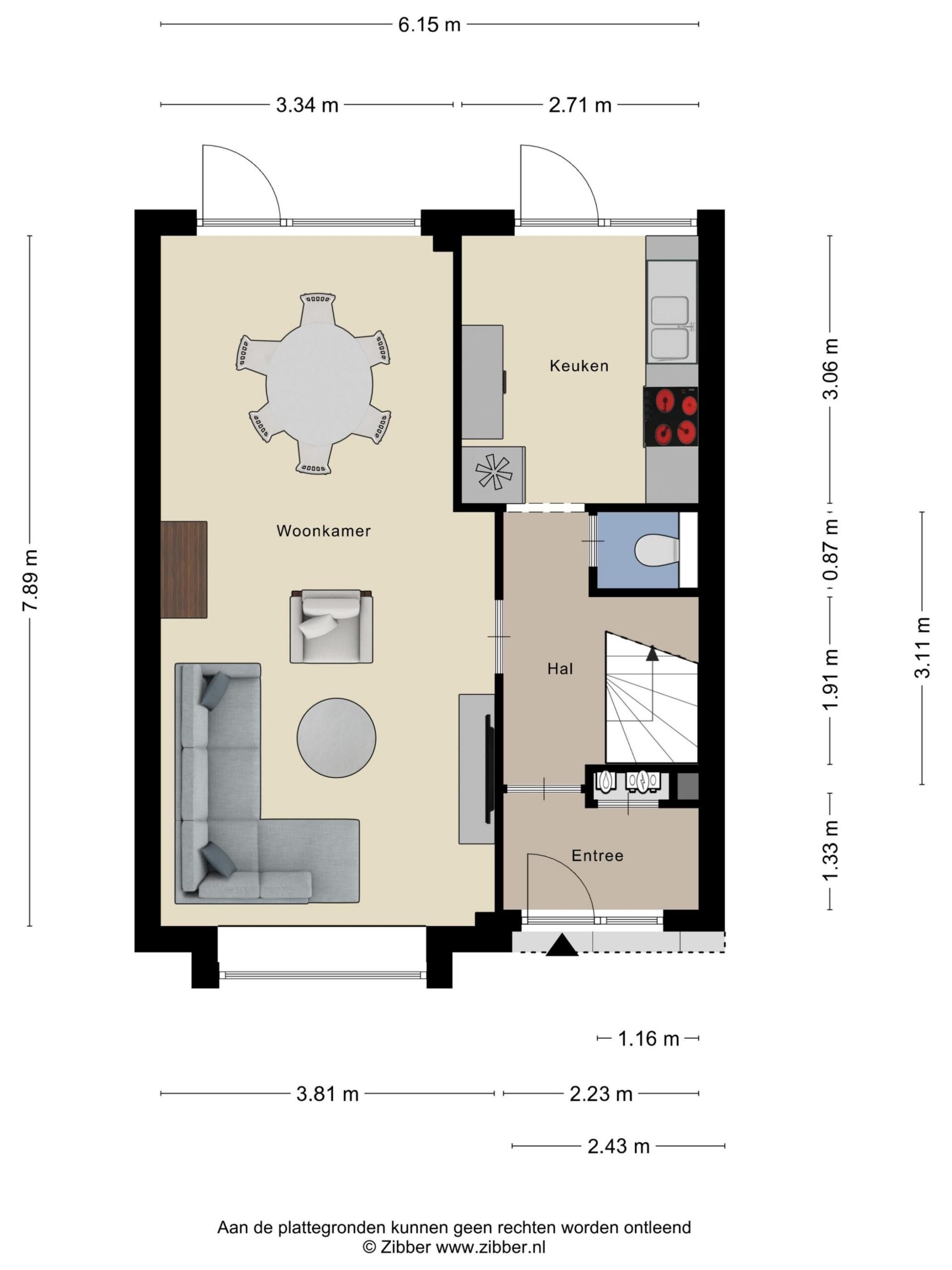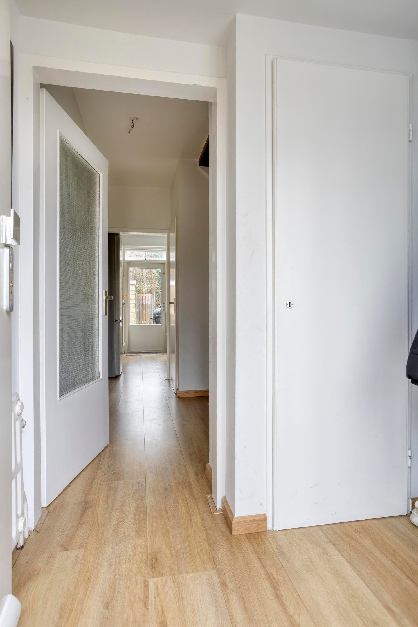 Bij binnenkomst kom je in de hal met toilet en trapopgang. Vanuit hier loop je door naar de lichte woonkamer, die dankzij de grote raampartijen een prettige en open sfeer heeft. Er is voldoende ruimte voor zowel een gezellige zithoek als een eethoek.