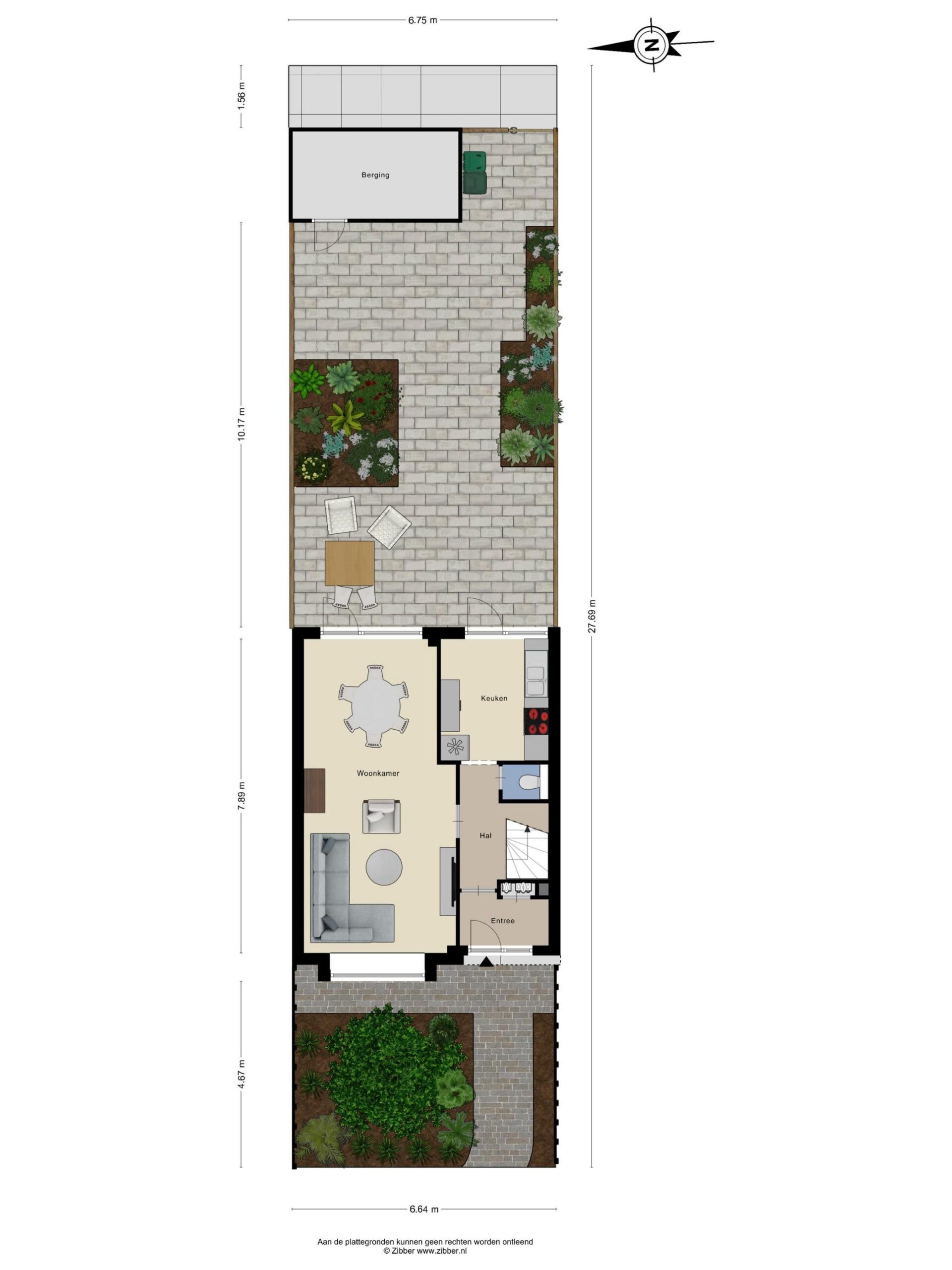 De woning beschikt over een diepe, fraai aangelegde achtertuin met veel privacy. Hier vind je meerdere zitplekken, groenvoorziening én een praktische berging achterin de tuin. Perfect voor ontspanning, opslag of het stallen van fietsen.
