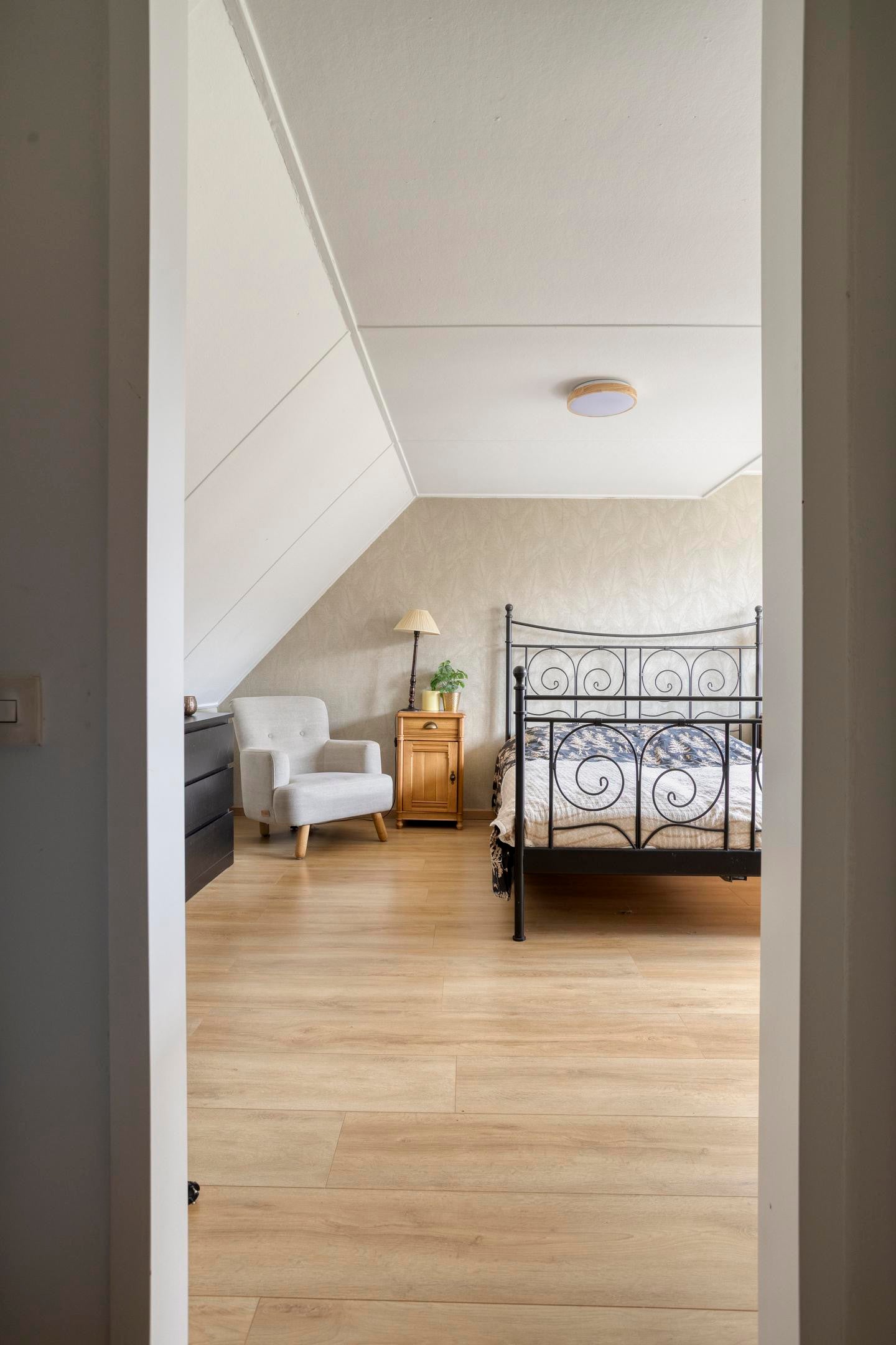 De tweede verdieping biedt een ruime vierde slaapkamer en extra bergruimte, ideaal als master bedroom, werkruimte of logeerkamer.