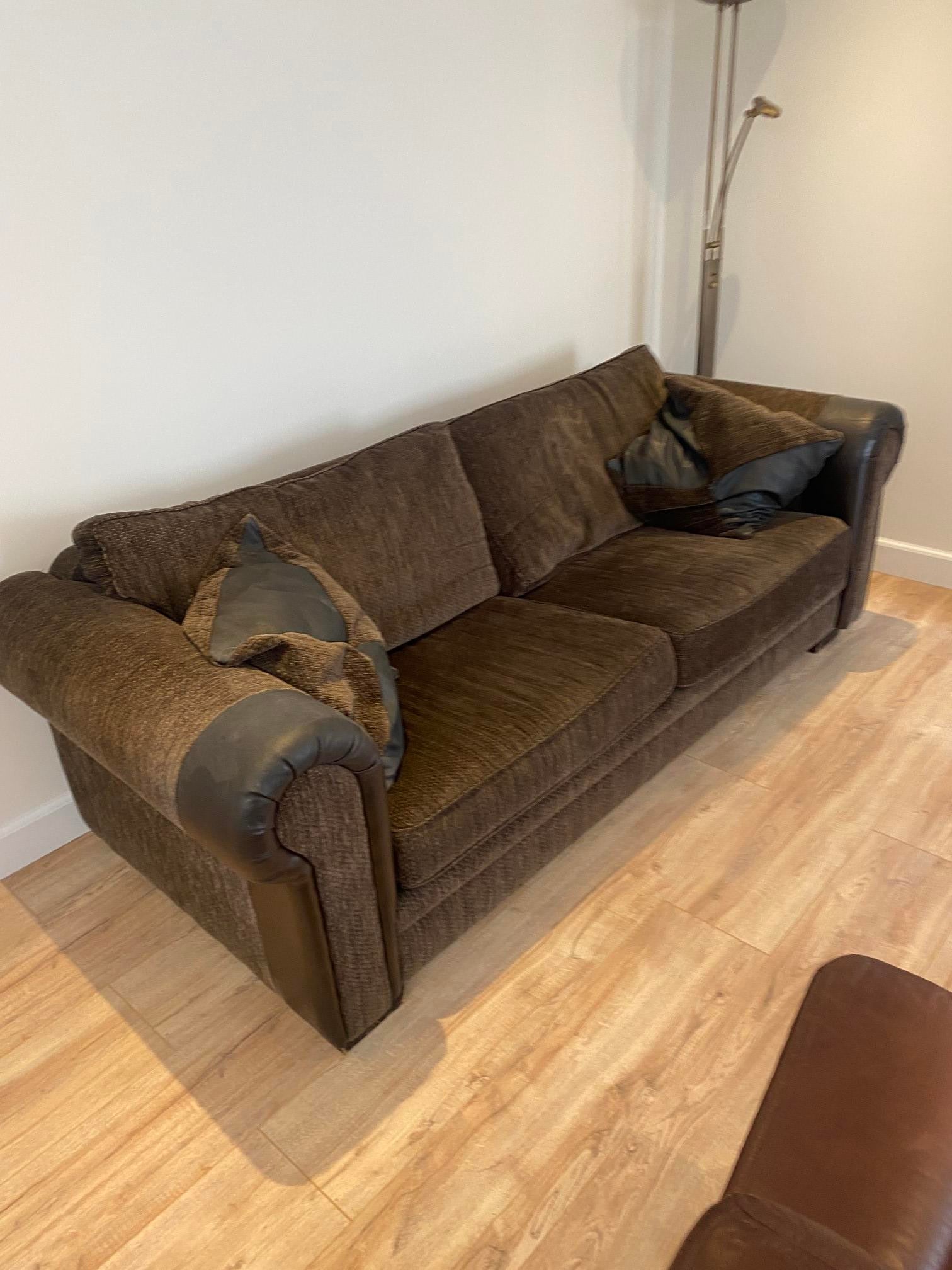 In woon/slaapkamer zijn aanwezig een bankstel, tafel met stoelen, tv met tv-meubel eenpersoonsbed en kledingkast.