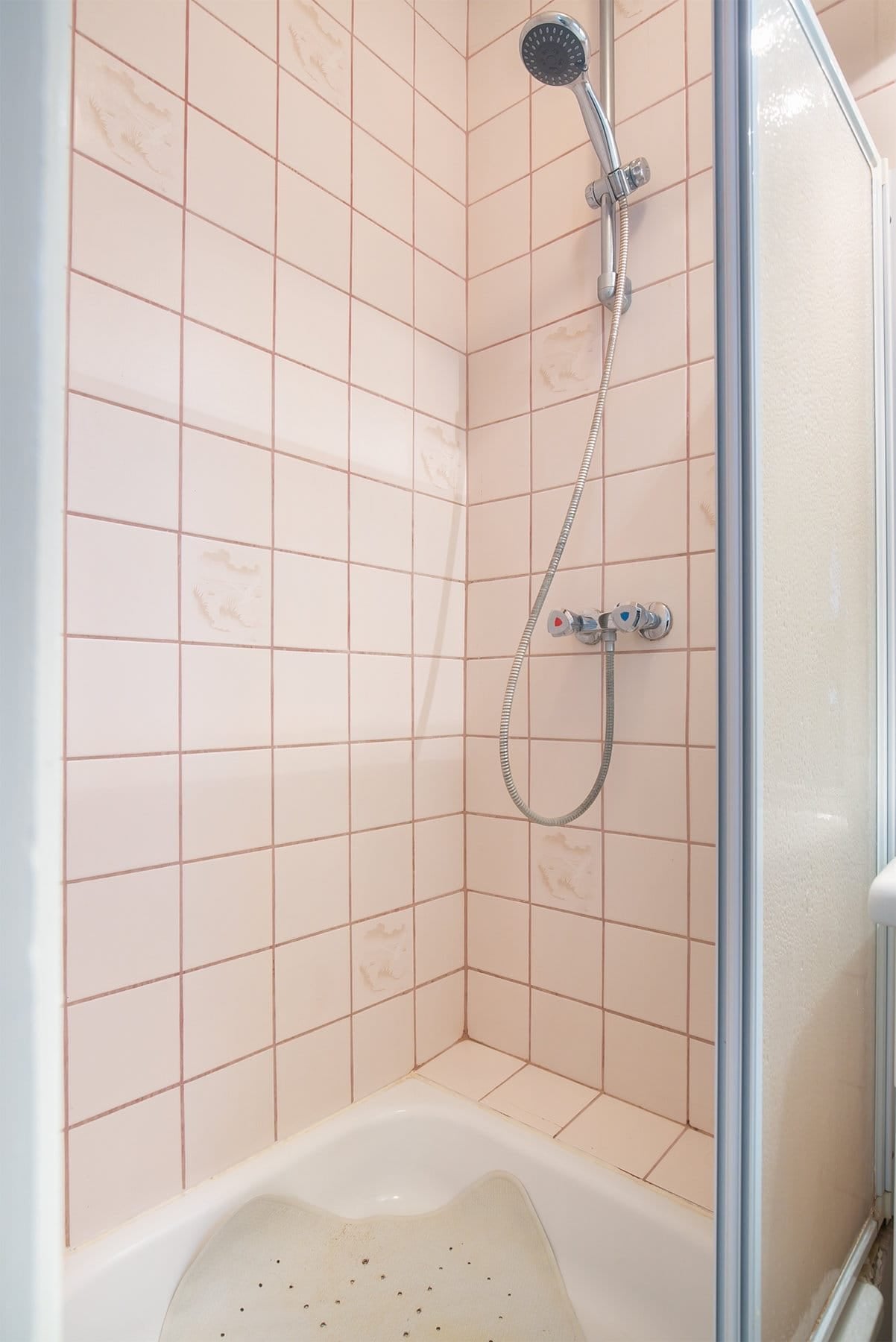 - Badkamer: bereikbaar via een aparte kamer die ook ideaal is als kantoor, opslagruimte of eventueel een derde slaapkamer. De badkamer is voorzien van douche, wastafel met meubel en handdoekenradiator.