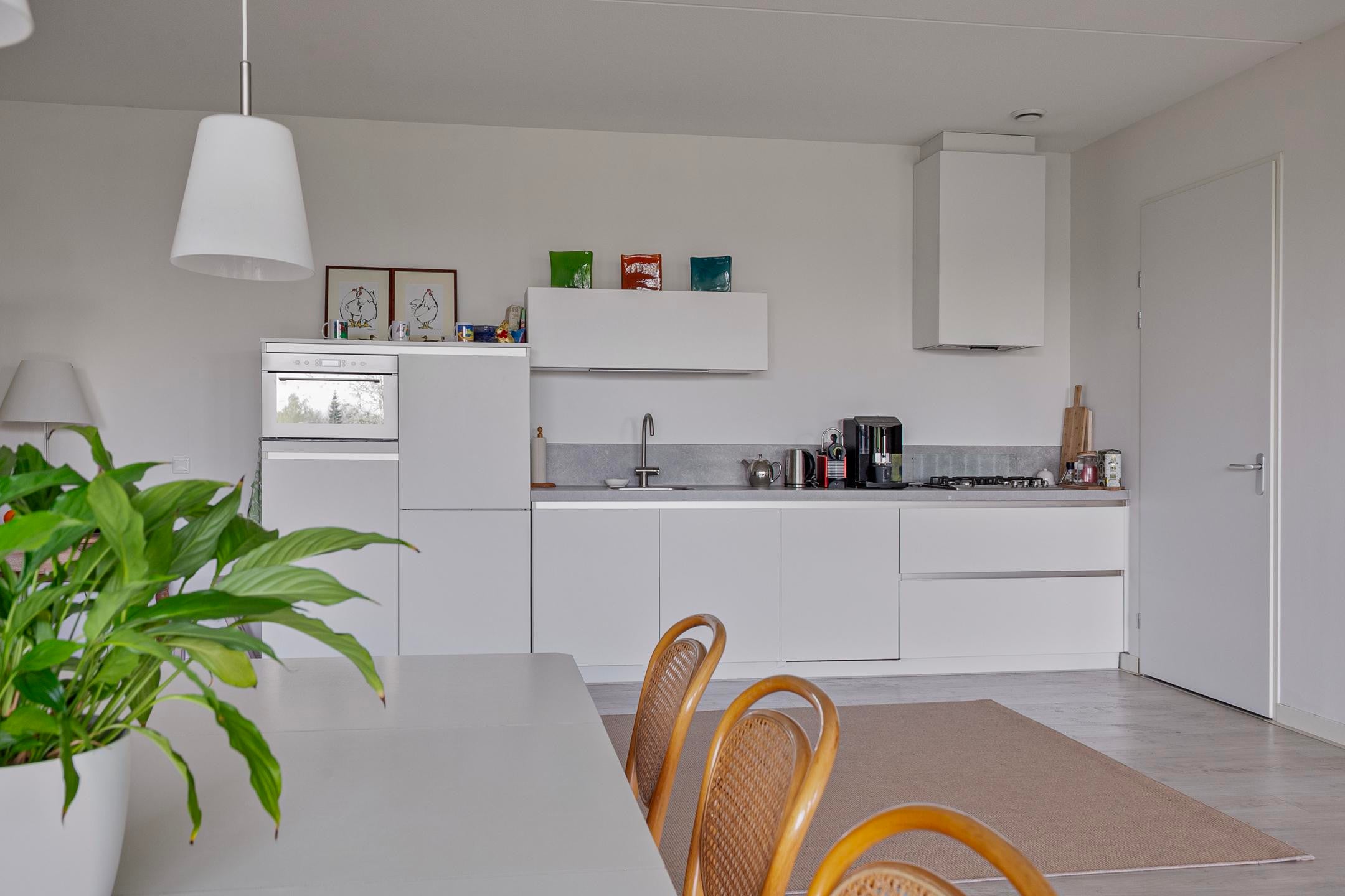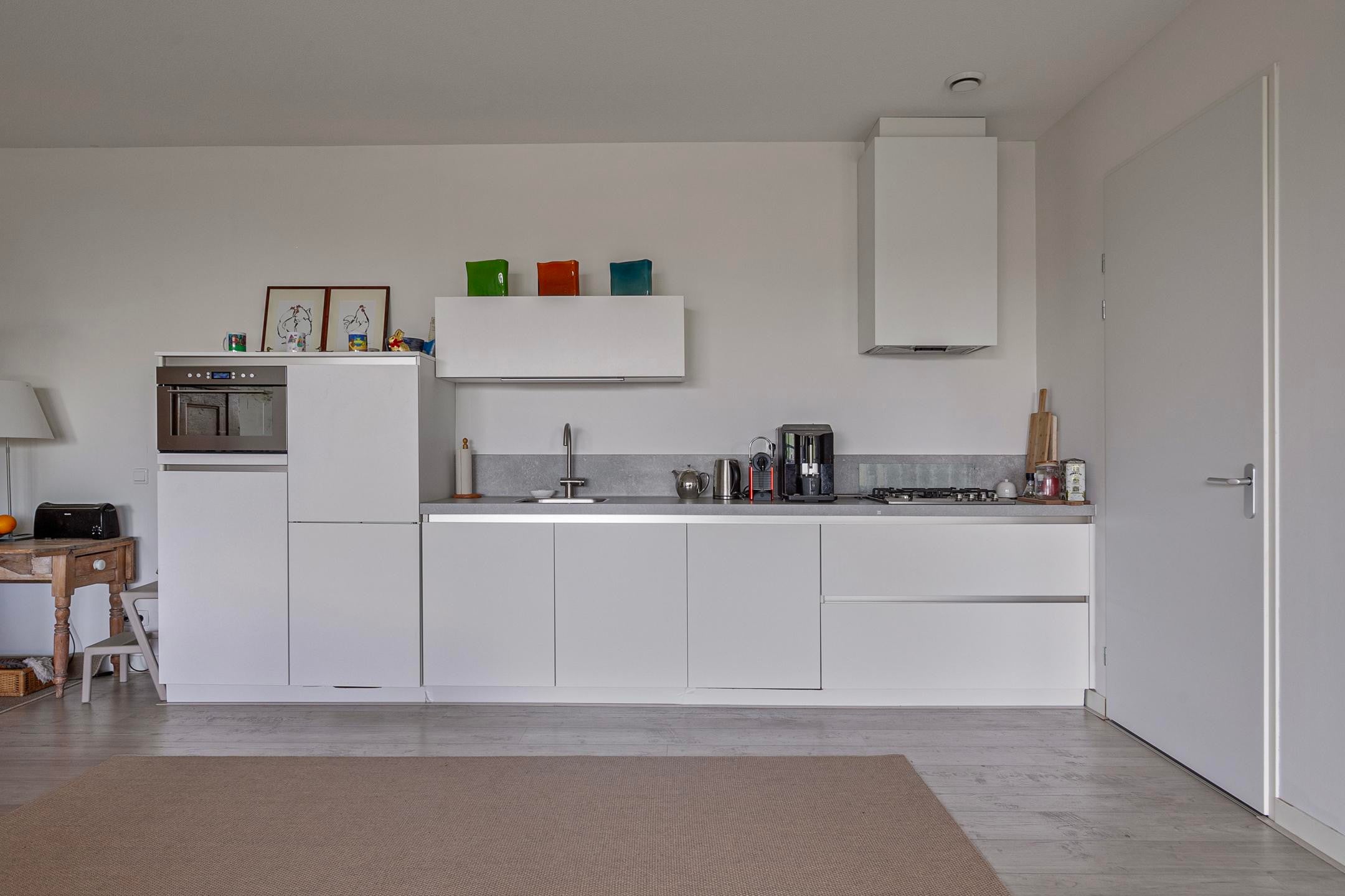 Vanuit de entree bereikt u de riante lichte living (ca. 52m²) met een open keuken voorzien van een lichte moderne keukeninrichting met inbouw apparatuur. Direct naast de keuken is een praktisch inloop- voorraadkast (ca. 1.46×2.32m) gesitueerd.