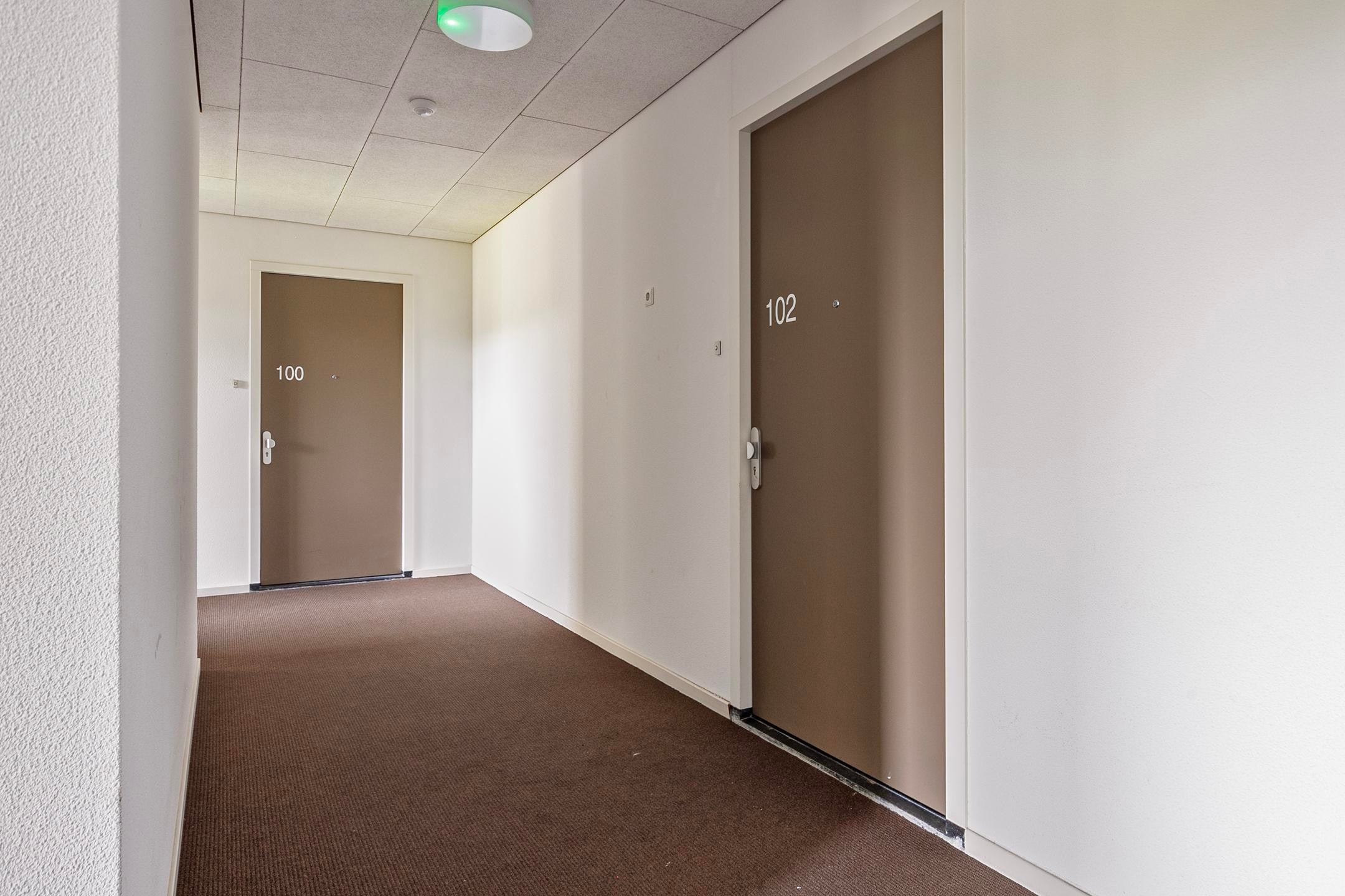Entree, hal met brievenbussen, bellentableau en video-intercom-systeem en een toegang tot trappenhuis en lift.